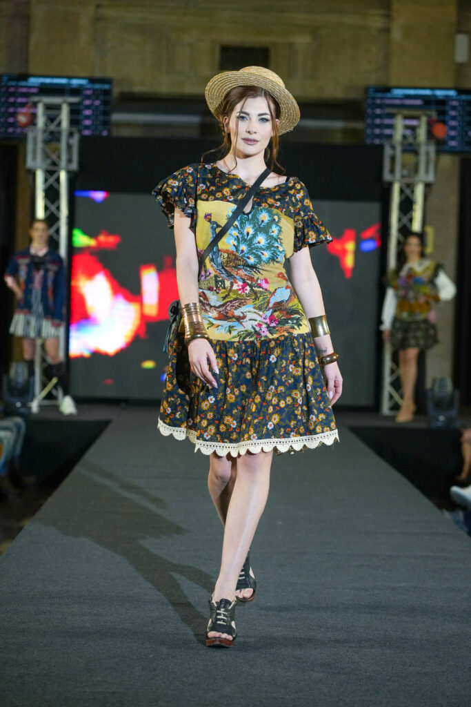 Вечерта продължи с колекцията на артистичния бранд Ignis Atelier, който създава уникални дрехи от автентични винтидж гоблени. Всеки гоблен е ръчно бродиран преди десетилетия и носи своя собствена история. В тяхното ателие тези текстилни произведения на изкуството се превръщат в съвременни дрехи с характер.